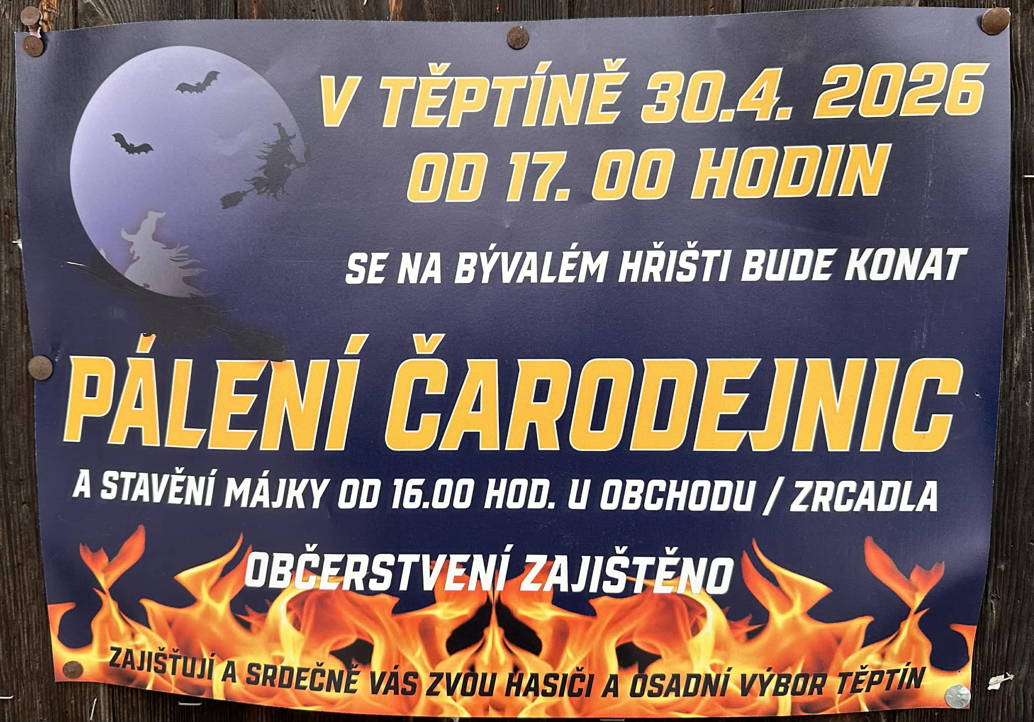 - 16:00 – stavění májky (u obchodu / zrcadla)